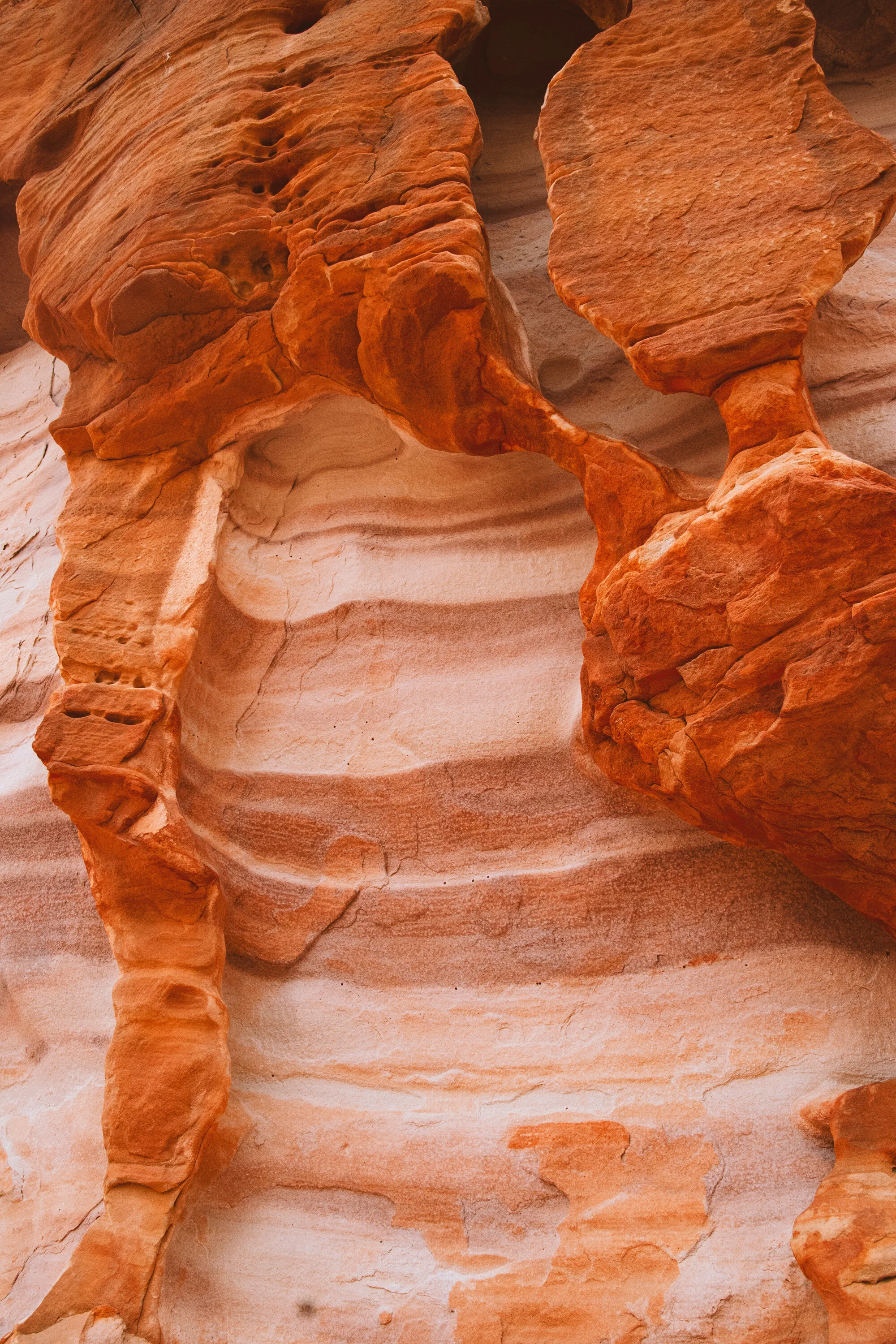 Once at the bottom, enormous peaks towered high above and wide domes stretched as far as we could see, all with delicate carvings eroded into the walls. Dragging our palms across the smooth surface, it was like we stepped into a time machine as the trail continued to wind through ancient Aztec sandstone that was formed 150 million years ago. Soon we arrived at the slot canyon and made our way into the narrows. It wasn’t as long as I had anticipated, but weaving through the massive hallway was exactly what I had hoped for! With elevated senses we found ourselves surrounded by the contoured walls, the sound was muffled, the air was warmer, and we were completely cut off from the outside world.